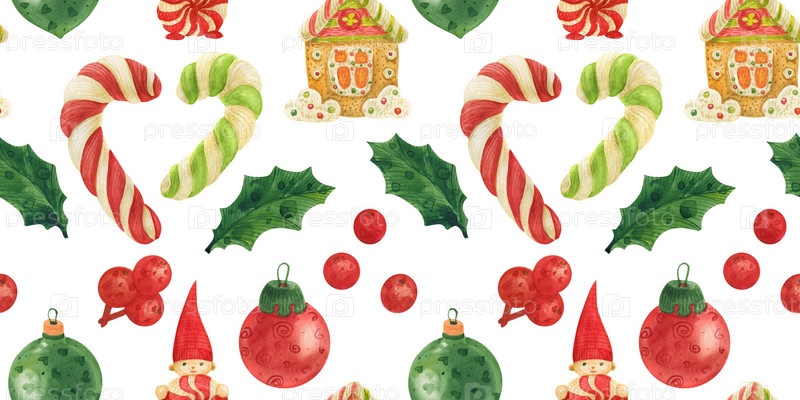 Рождественский узор «Фабрика эльфов» с леденцами, падубом и стеклянными безделушками