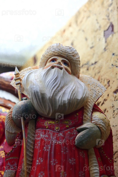 Резная раскрашенная фигурка Деда Мороза, крупный план