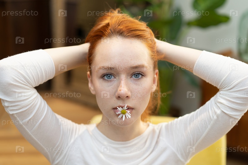 Портрет молодой красивой женщины с рыжими волосами в студии