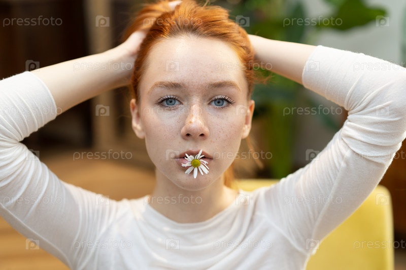 Портрет молодой красивой женщины с рыжими волосами в студии