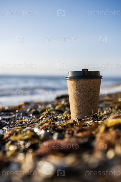 Стакан кофе на берегу моря