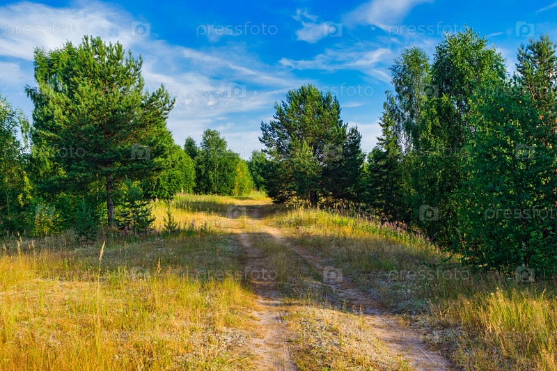 Грунтовая дорога в лесу в летний день