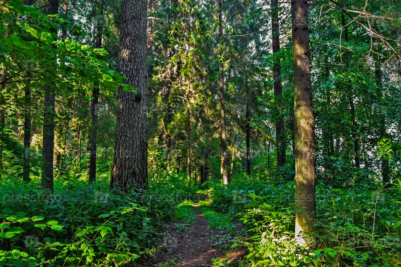 Грунтовая дорога в лесу в летний день