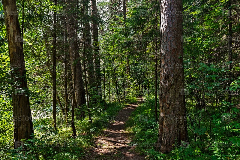 Грунтовая дорога в лесу в летний день