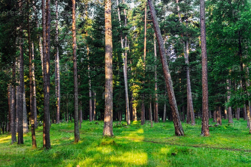 Красивый сосновый лес ранним утром
