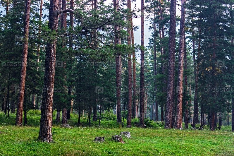 Красивый сосновый лес ранним утром