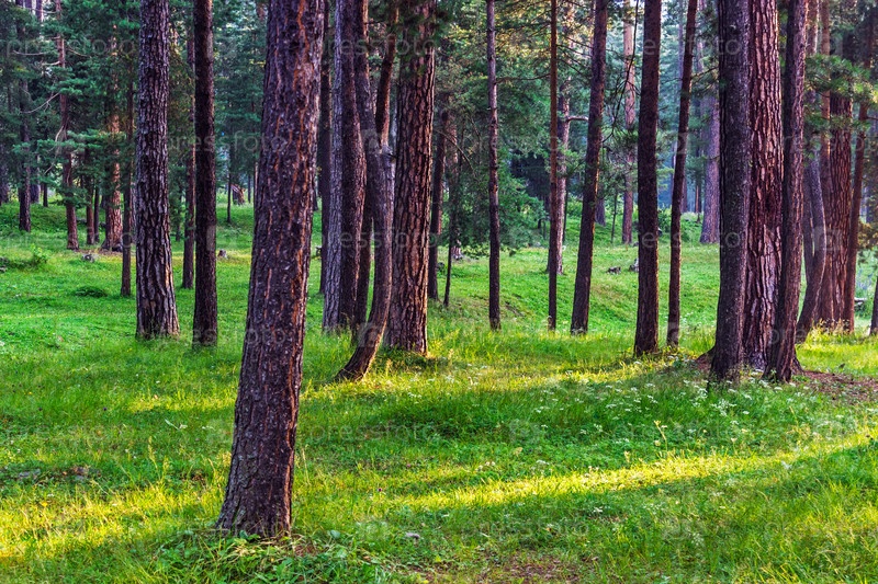 Красивый сосновый лес ранним утром