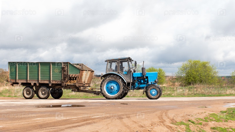 Синий трактор с прицепом