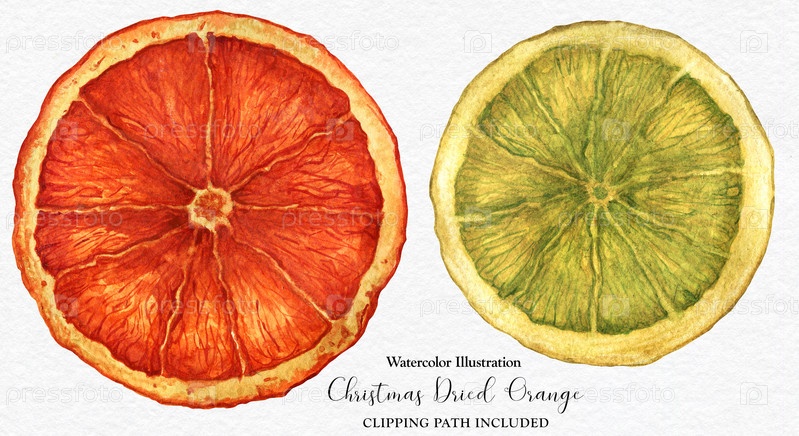 Рождественские акварельные дольки сушеных апельсинов
