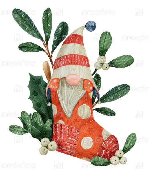 Рождественский гном в смешной полосатой шапке