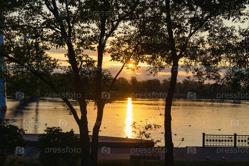 Рассвет над Енисеем в центре Красноярска сентябрьским утром