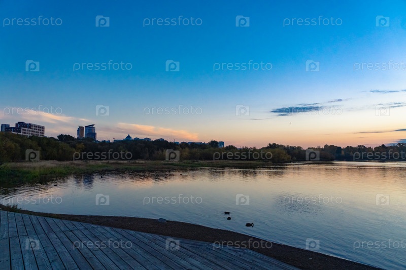 Рассвет над Енисеем в центре Красноярска сентябрьским утром