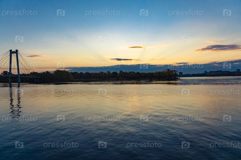 Рассвет над Енисеем в центре Красноярска сентябрьским утром