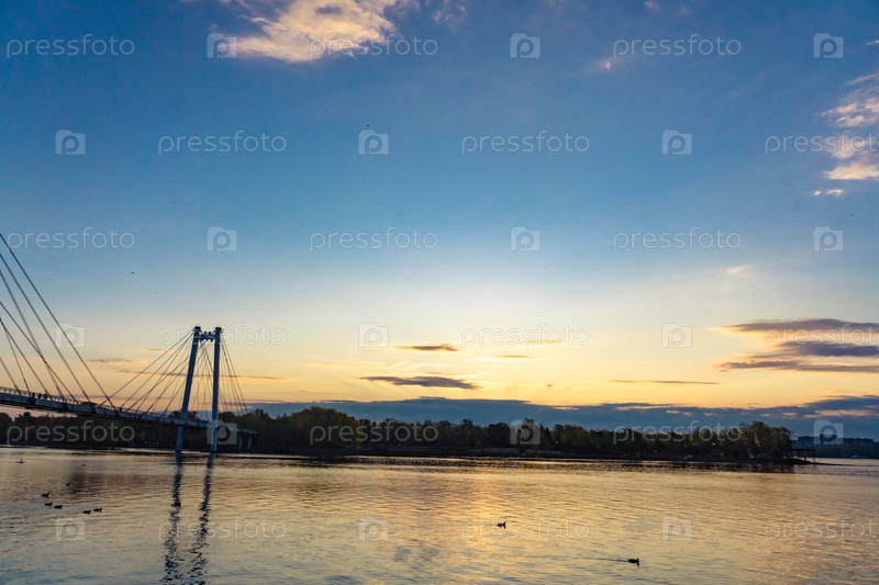 Рассвет над Енисеем в центре Красноярска сентябрьским утром