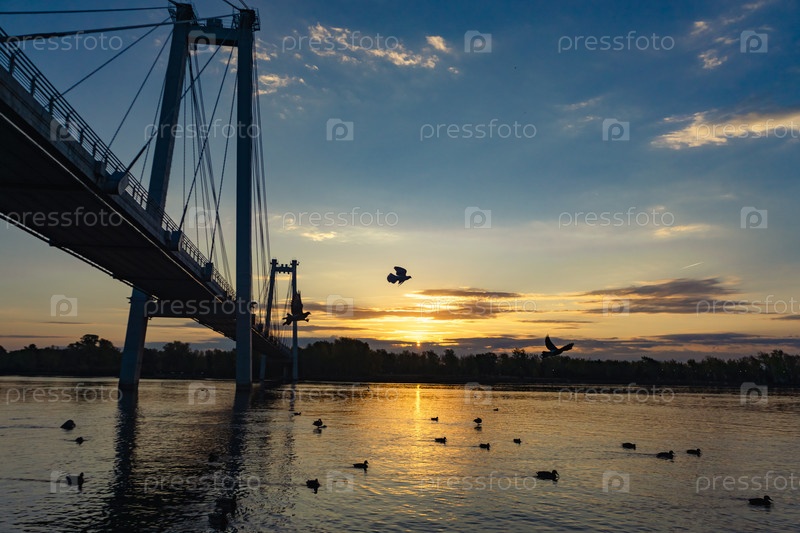 Рассвет над Енисеем в центре Красноярска сентябрьским утром