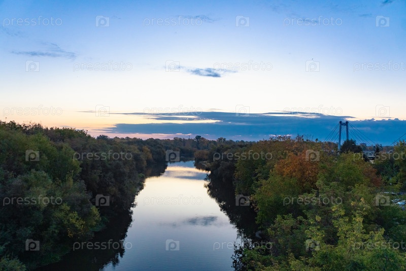 Рассвет над Енисеем в центре Красноярска сентябрьским утром