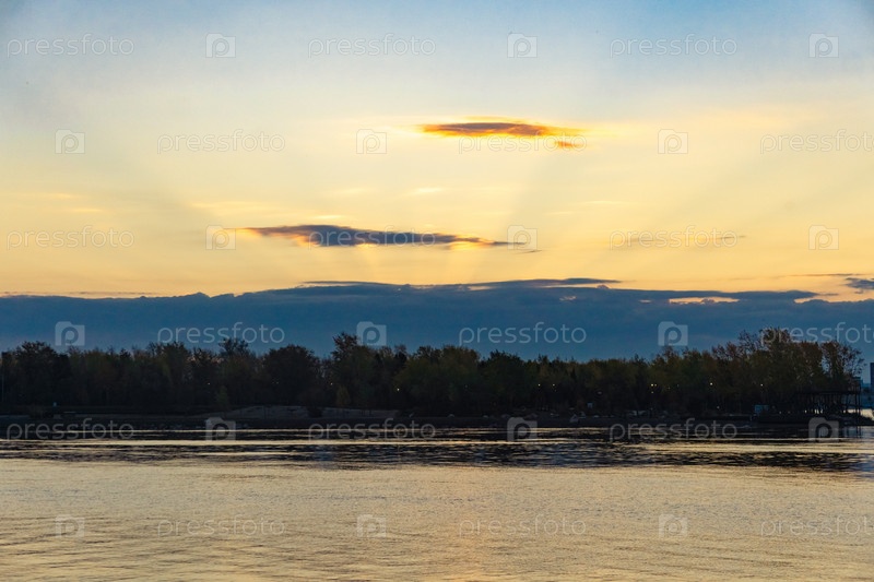 Рассвет над Енисеем в центре Красноярска сентябрьским утром