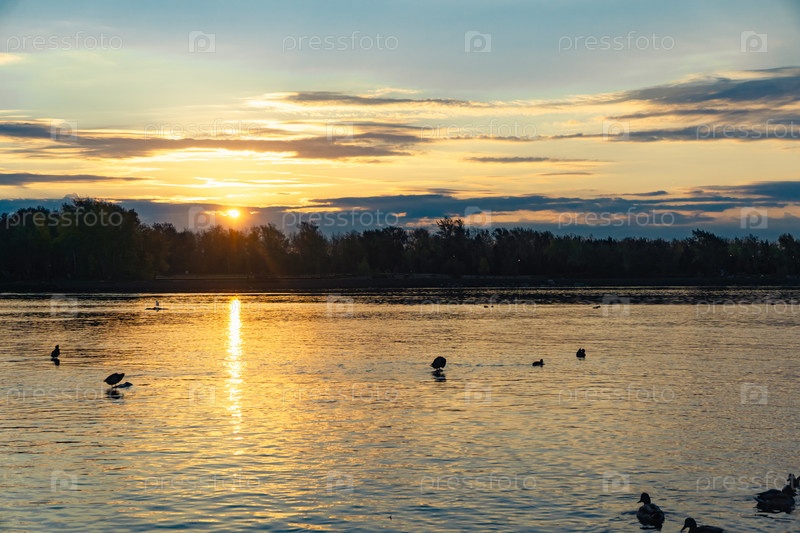 Рассвет над Енисеем в центре Красноярска сентябрьским утром