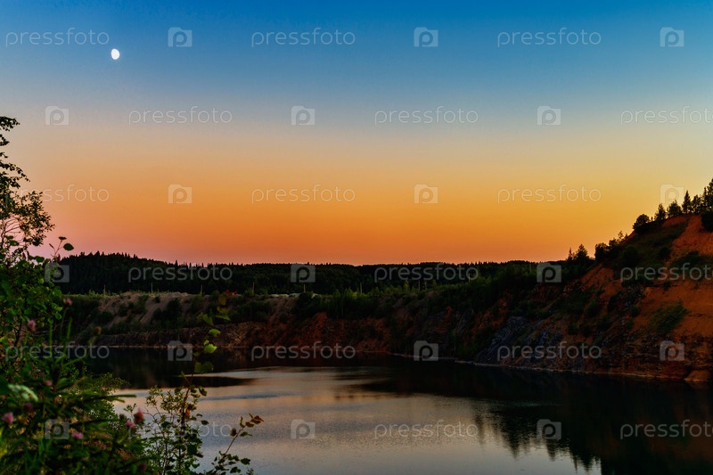 Луна над горным озером летним вечером