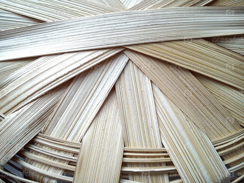 Часть корзины, сплетенной из лозы в теплых бежевых тонах. Корзина из щепы или лыка