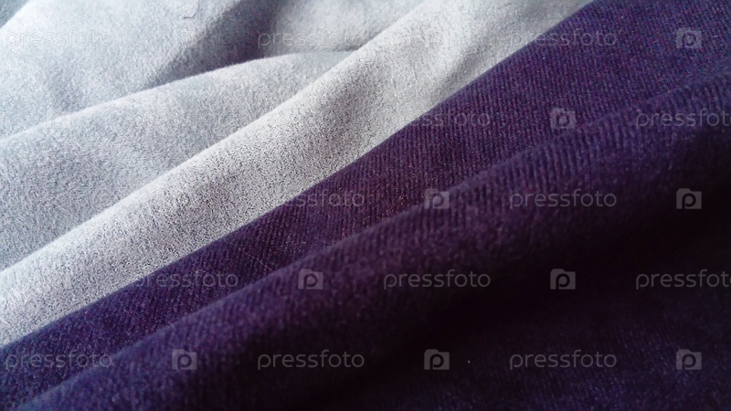 Две бархатные ткани разных оттенков синего сложены рядом. Приятные на ощупь материалы мягкой текстуры. Ворсистая ткань. Светло-голубой, серо-синий и темно-фиолетовый