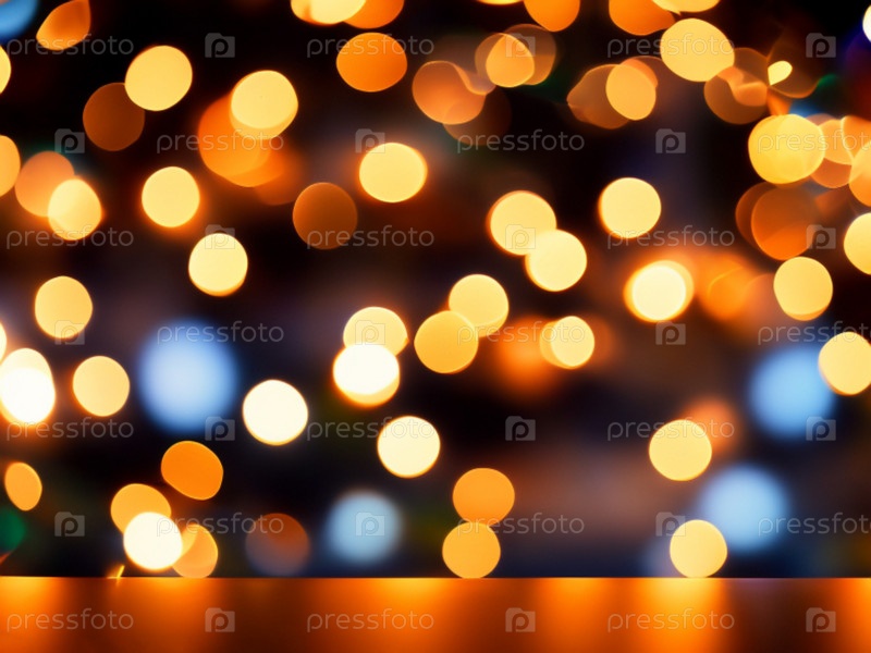 Красивое рождественское боке с теплым оттенком желтого, красного и оранжевого. Новогодний фон для демонстрации или установки продукции и товаров. Разноцветные блики