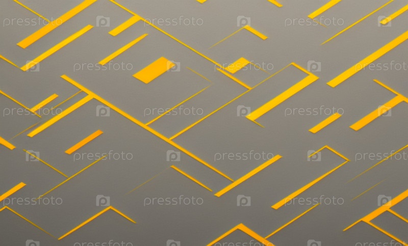 Серо-оранжевый модный абстрактный фон строгого стиля. Яркие оранжево-желтые хаотично расположенные полосы разной длины и толщины на серо-коричневой основе