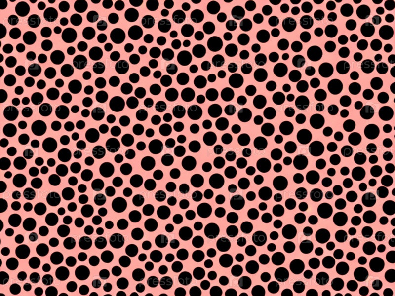 Черные круги разного размера на розовом фоне. Яркий узор в рябой горошек. Создано искусственным интеллектом. Круги расположены близко друг к другу
