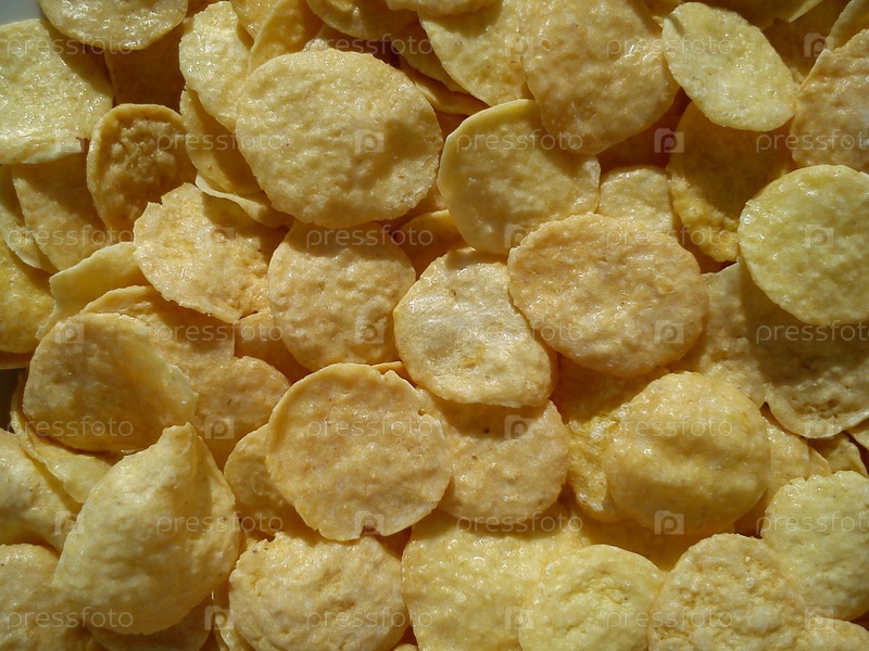Медовые кукурузные хлопья, выложенные на белой поверхности, освещенные сбоку и создающие игру светотени
