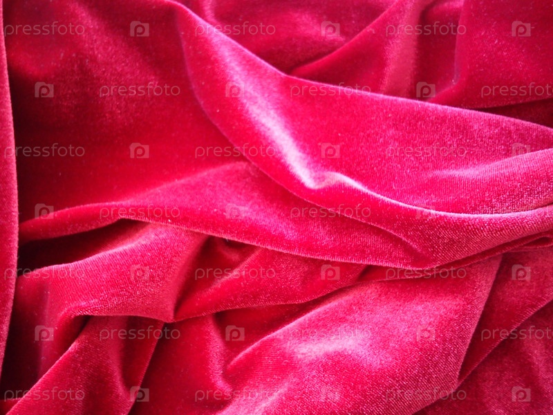 Мятая бархатная тяжелая ткань насыщенного красного цвета с отблеском света
