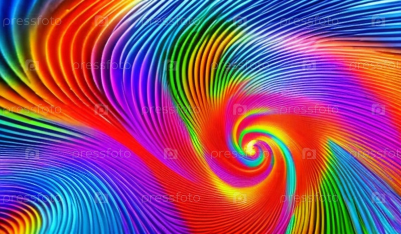 Красочный абстрактный красивый фон. Красные, синие, зеленые, фиолетовые, фиолетовые полосы, волны, линии, завитки, шишки. Мягкие объемные волнистые линии. Колебание пульсационного движения. Вихрь или вспышка