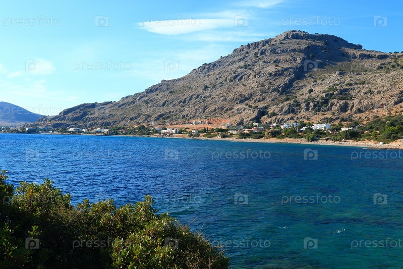 Море и гористый берег возле Пефкоса. Остров Родос, Греция