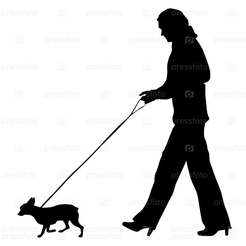Силуэт женщины и собаки на белом фоне