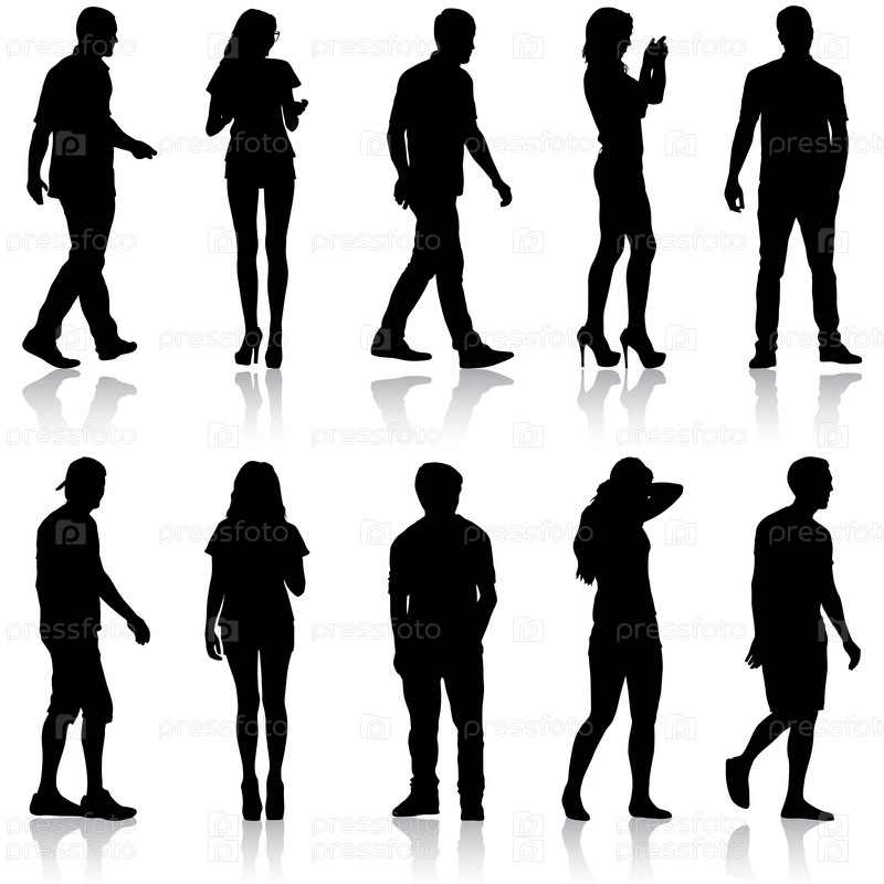 Силуэт группы людей, стоящих на белом фоне