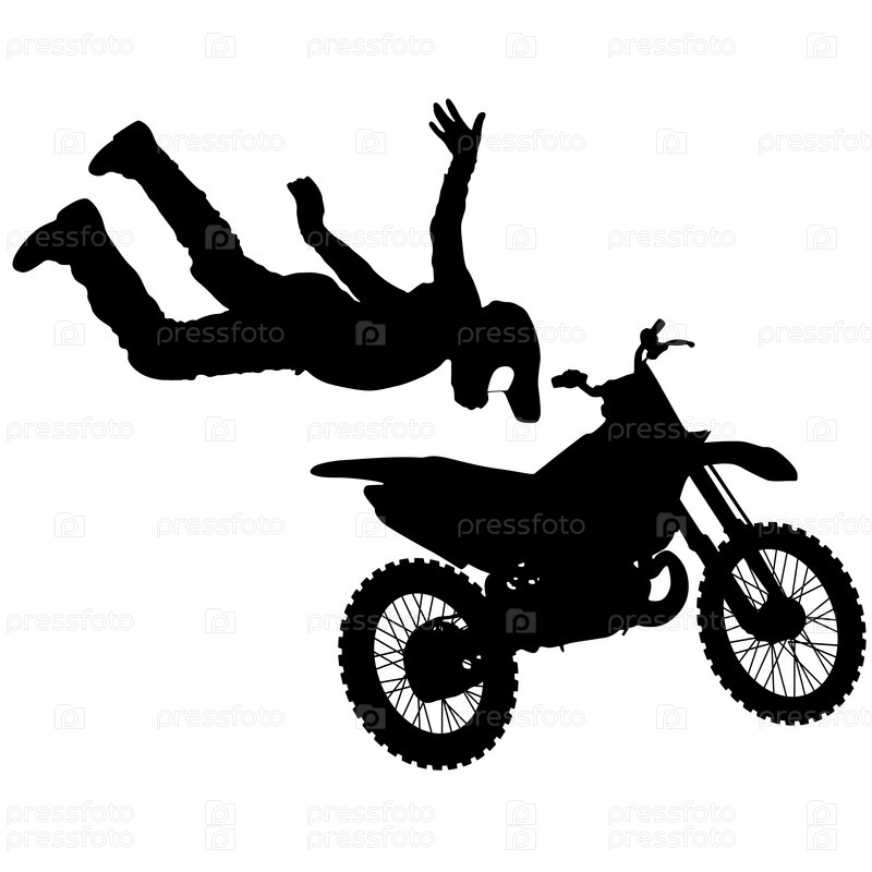 Силуэт мотоциклиста, выполняющего трюк на белом фоне