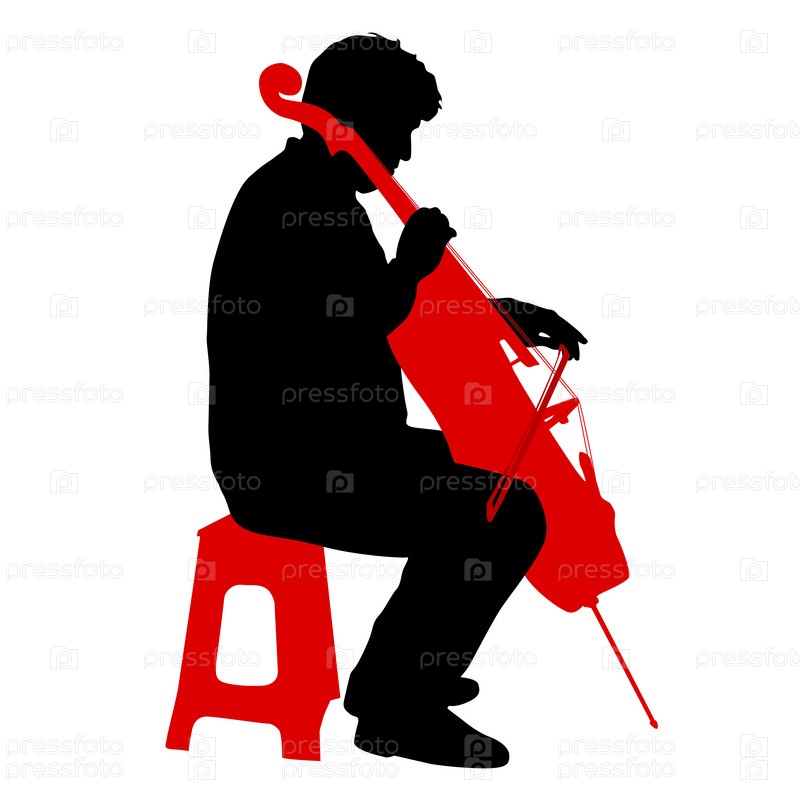 Силуэты музыканта, играющего на виолончели на белом фоне