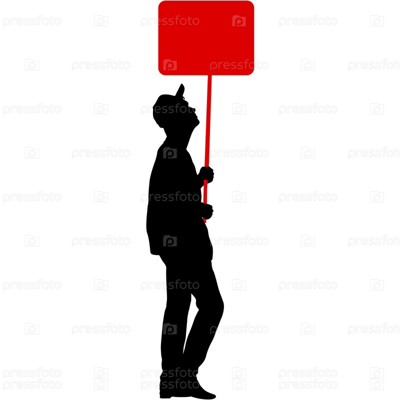 Черные силуэты женщины и мужчины с баннером на белом фоне