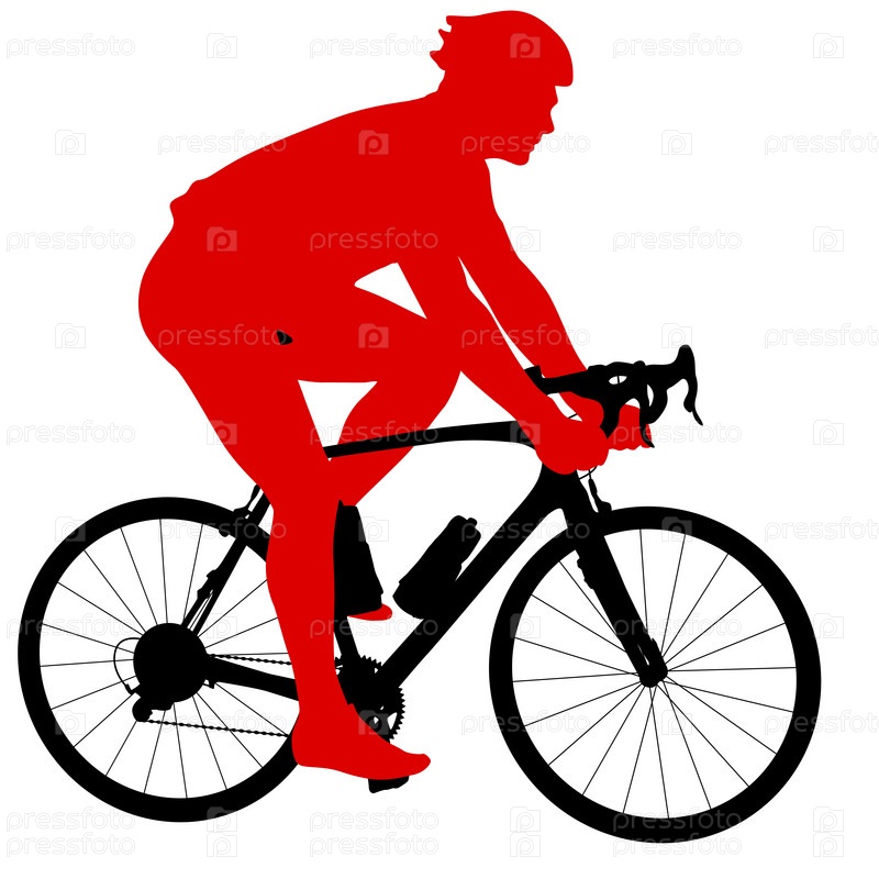 Силуэт спортивного велосипедиста на белом фоне