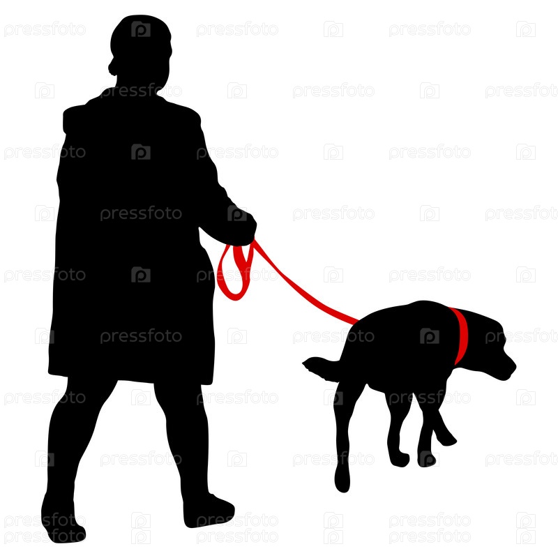 Силуэт женщины и собаки на белом фоне