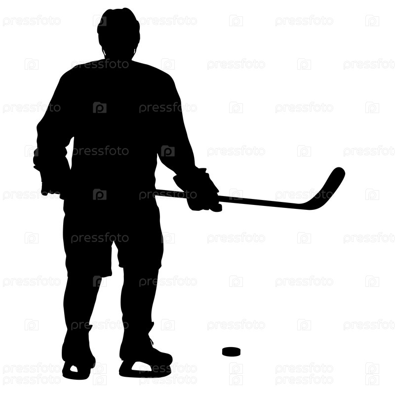 Силуэт хоккеиста на белом фоне