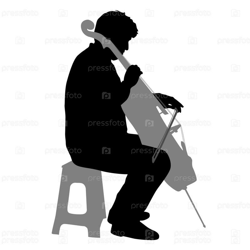 Силуэты музыканта, играющего на виолончели на белом фоне