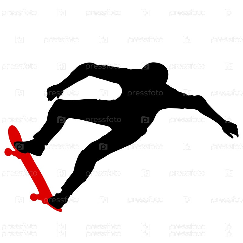 Черный силуэт спортсмена-скейтбордиста в прыжке