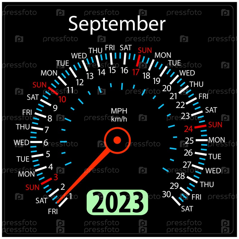 Календарь спидометра 2023 года в векторе. Сентябрь