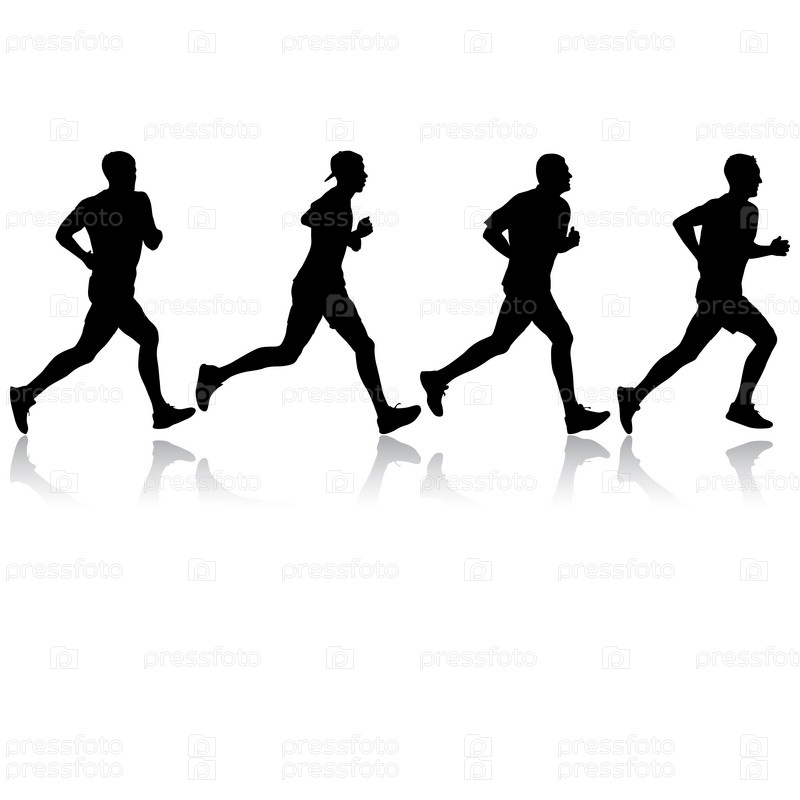 Набор силуэтов. Бегуны на спринте на белом фоне