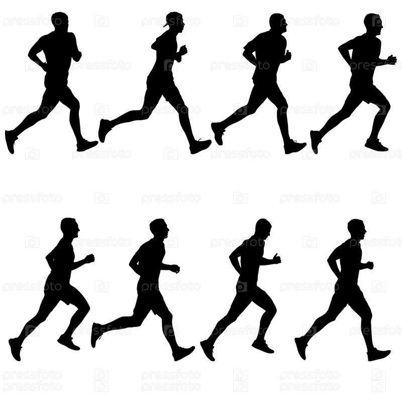 Набор силуэтов. Бегуны на спринте на белом фоне