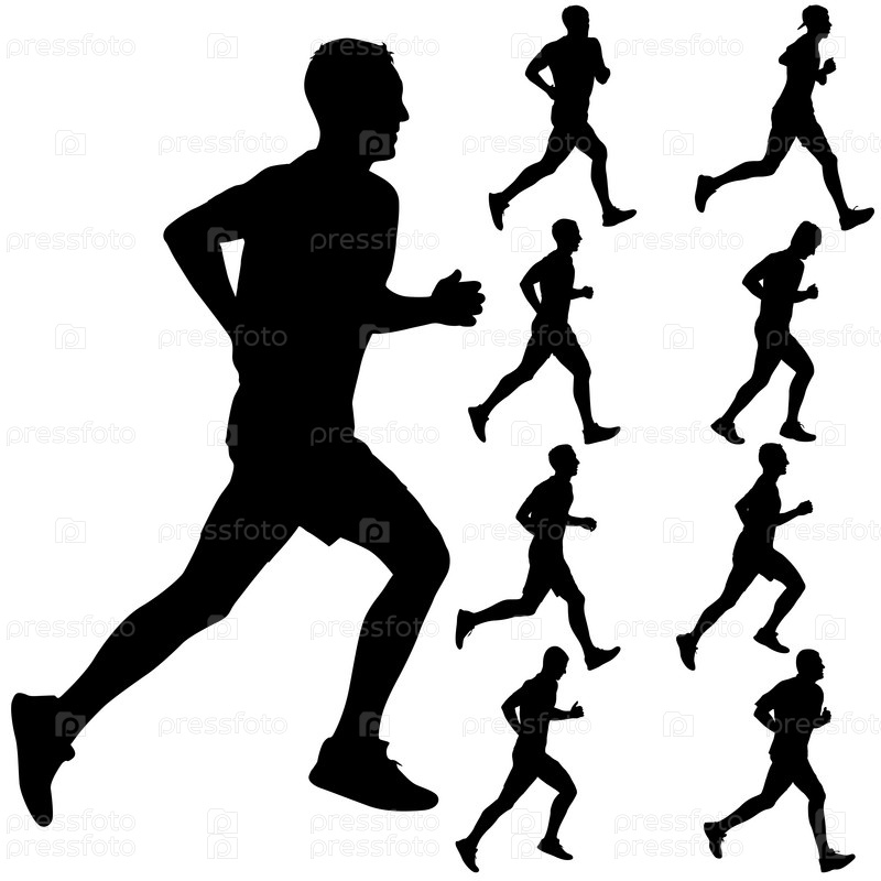 Набор силуэтов. Бегуны на спринте на белом фоне