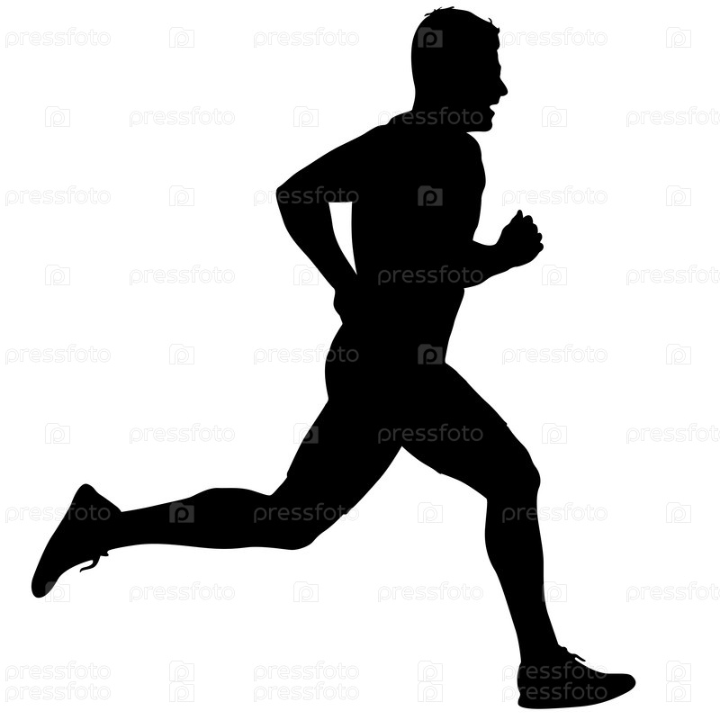 Черные силуэты бегунов на белом фоне