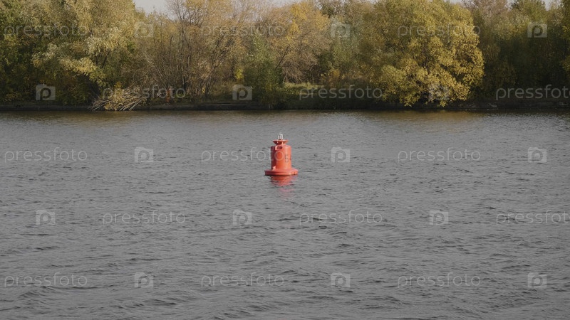 Оранжевый буй или маяк в реке, озере или водоеме