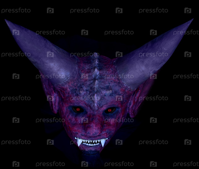Голова дьявола на черном фоне, красная маска дьявола на Хэллоуин