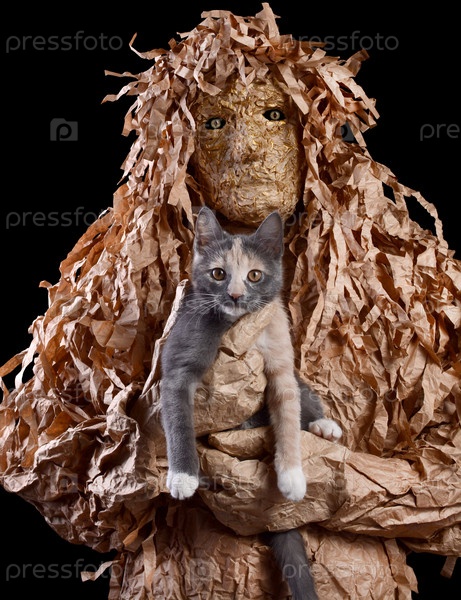 Страшное существо держит на руках кота. Вход в подземный мир с помощью кота